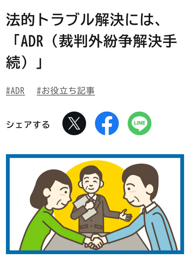 ☆トラブルの解決には、「ADR(裁判外紛争解決手続)」という選択肢もあるようなで、一読をお勧めします。